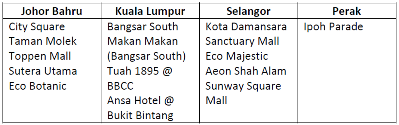 Participating Outlets (and other up-coming/new outlet(s), if any) :