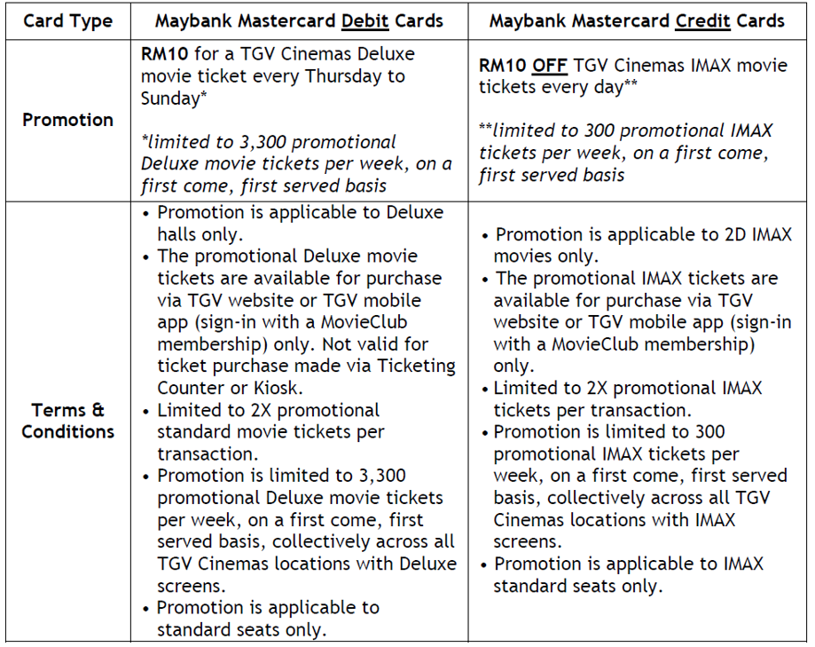Exclusive TGV Cinemas Movie Ticket Offers with Maybank Mastercard Cards